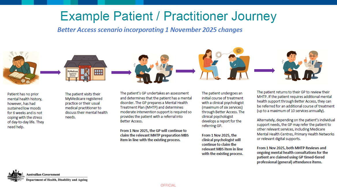 From 1 November 2025, changes will be introduced to the Better Access to Psychiatrists, Psychologists and General Practitioners through the Medicare Benefits Schedule (MBS) initiative.